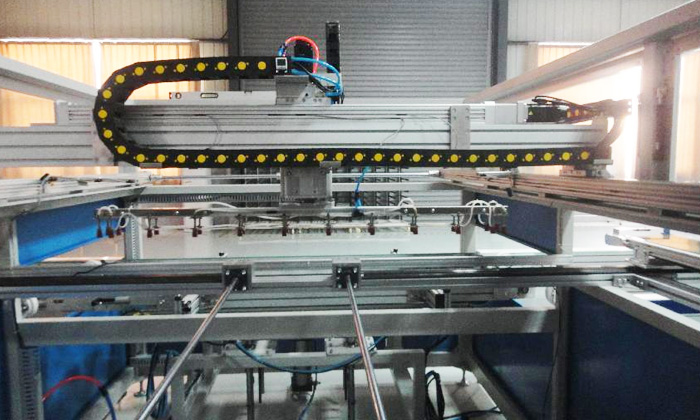 3.將電池串按不同方向自動擺放到玻璃上,電池串的精準度±0.1mm,引起破片和隱裂的比例不能超過0.05%。設備可生產125、156電池片,電池片以方形八角形均可。